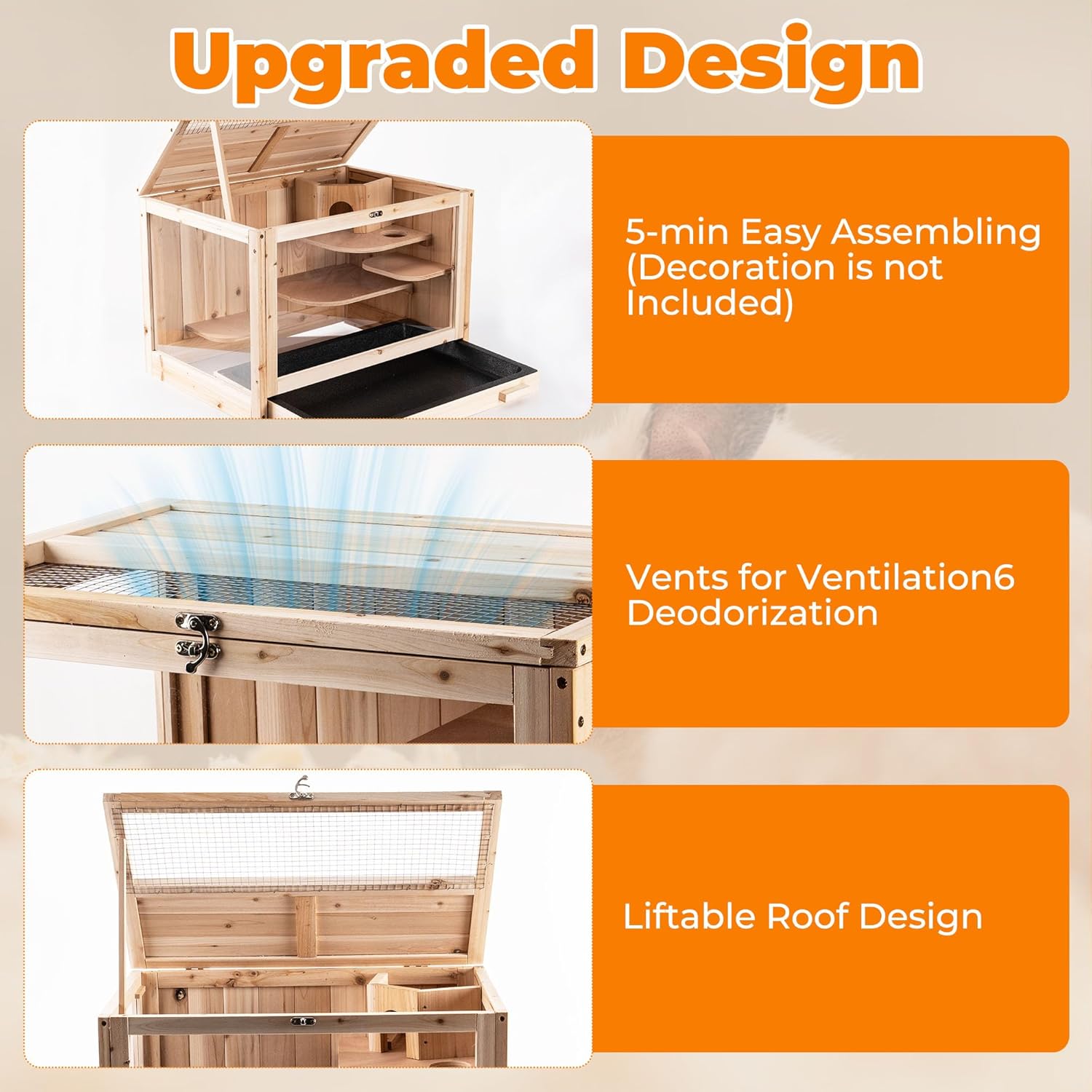 - 【Well-Ventilated & Transparent Design】:Our hamster cage is designed with top wire mesh for optimal ventilation and high-quality acrylic material, The bright large area acrylic glass allows you to observe your pets' activities from multiple angles