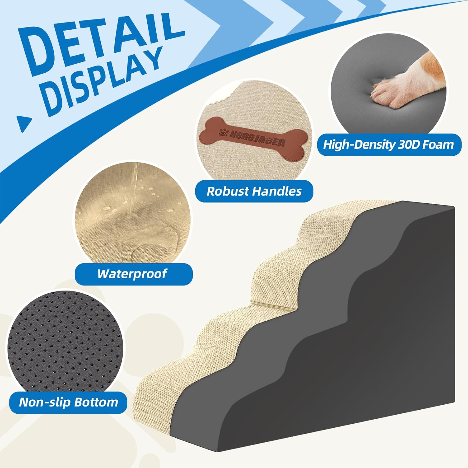 - Safety and Reliability: High-density memory foam provides excellent support, ensuring optimal support while protecting your dog's knee; The lightweight foam material is easy to carry, and even with repeated use, the pet stairs won't deform