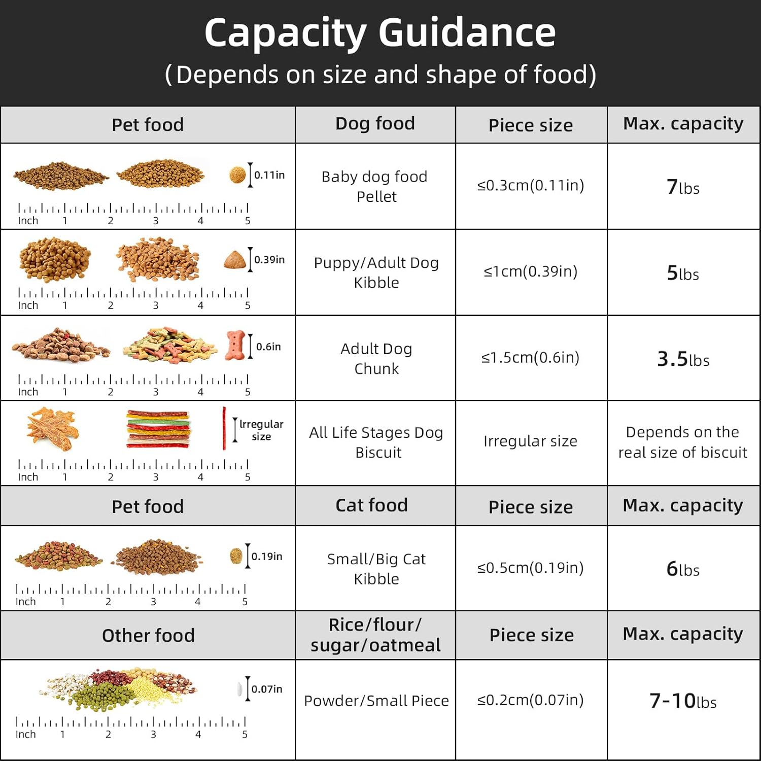 - MULTI-PUrRPOSE STORAGE:Our pet food container is suitable for storing dog food、cat food、bird seed、fish food、rice、 dry food、cereals、oats、cat litter 、flour and other large and small grains, as well as washing powder used at home. It is also a good choice.