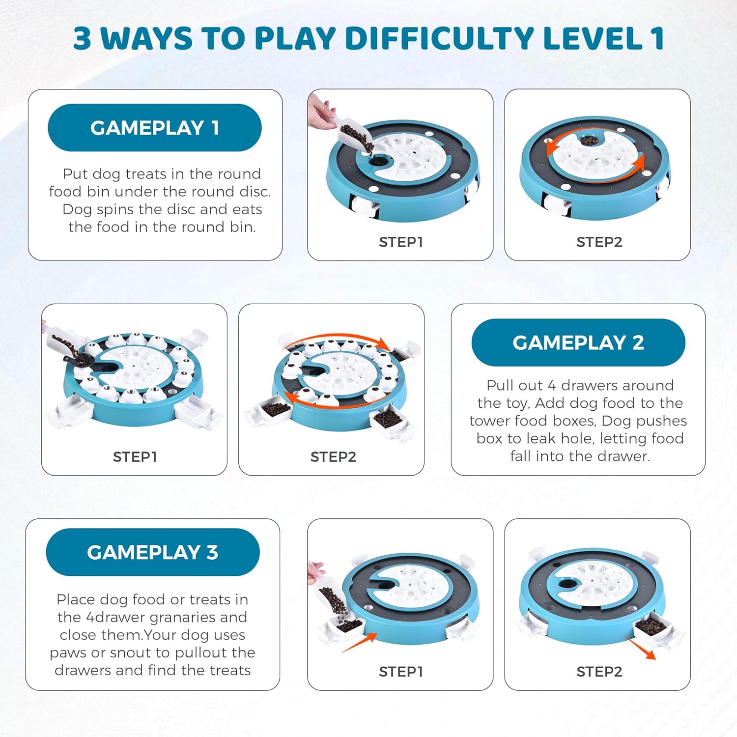 - Adjustable Challenges Levels - This puzzle toy can support multiple levels, from very easy to difficult, so you don’t have to buy multiple puzzle toys. This puzzle can alongside your dog's understanding, gradually increasing the challenge.
