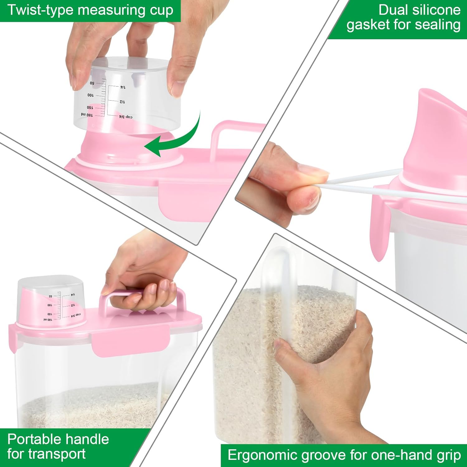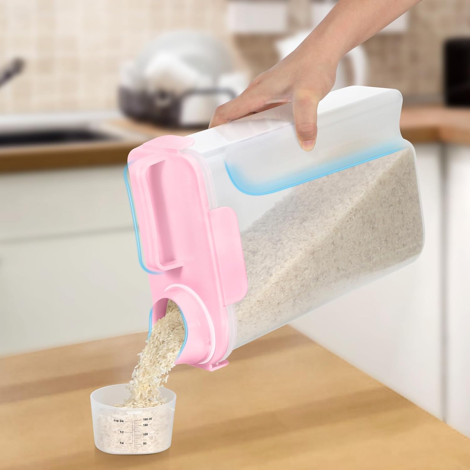 Rice Storage Container 10 Lbs, Pet Cat Dog Food Storage Container with Larger Spout and Cup, Airtight Cereal Containers Storage Food Cereal Dispenser, Kitchen and Pantry Organization Bin-Pink