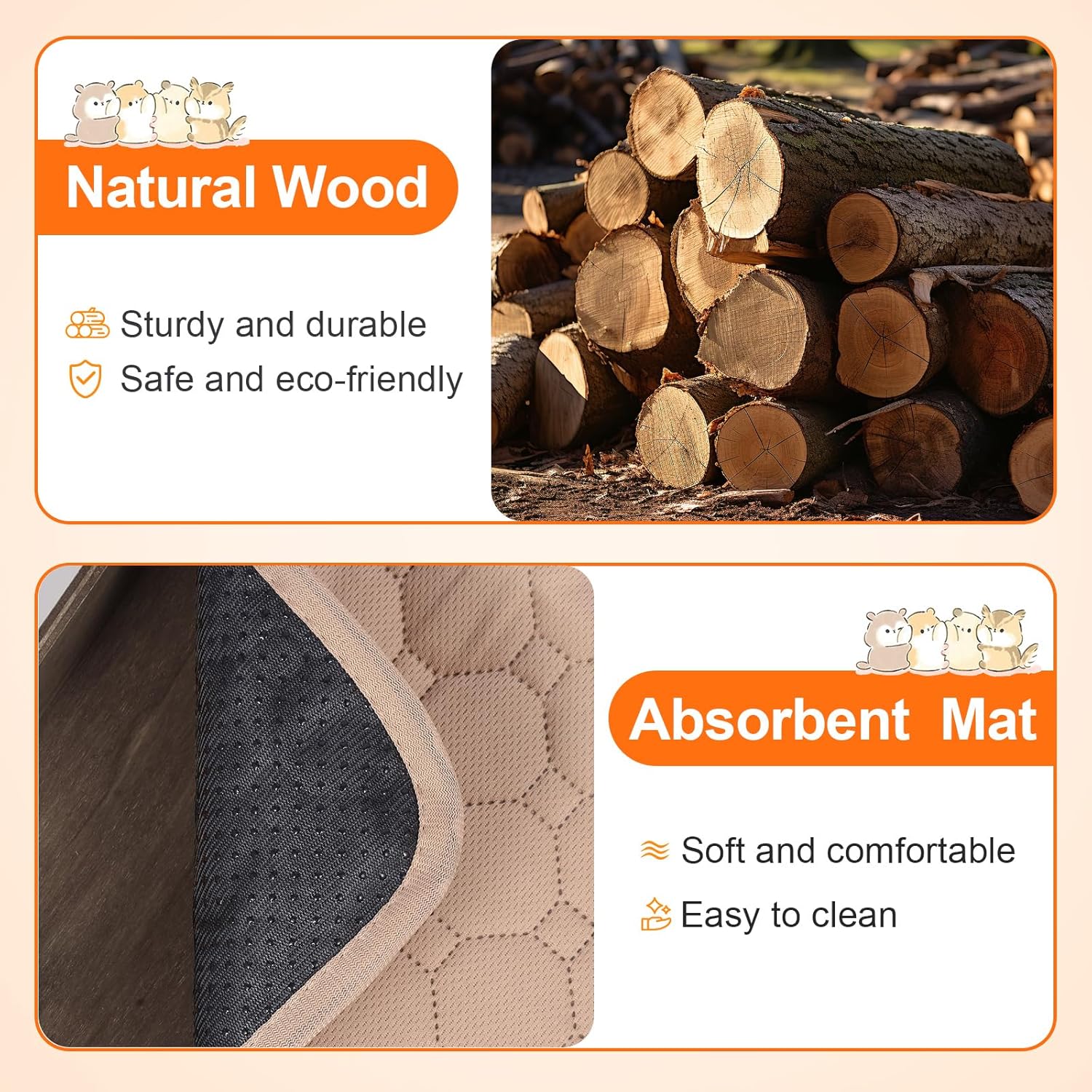 - đ°ăPremium MaterialăThe upgraded guinea pig castle is made of premium wood plywood, safe, environmentally friendly, non-toxic, durable, very suitable for small pets to play and rest. The wooden guinea pig hideout is intelligently designed for easy assembly, with simple steps and securely screwed-together planks. Following the detailed instructions allows pet owners to swiftly complete assembly. This sturdy construction provides a reliable and long-lasting shelter for pets.