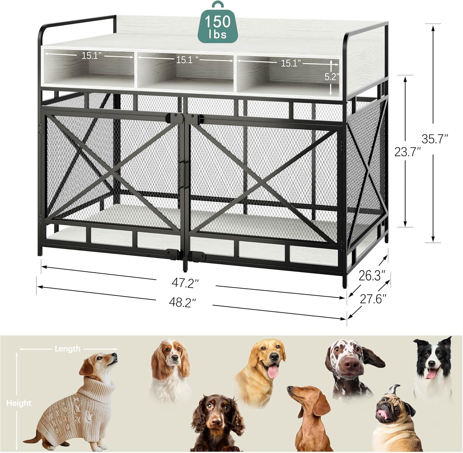 - Chew-Proof & Heavy-Duty Construction: Built to Resist Even the Most Determined Chewers-Constructed with sturdy metal wire mesh and reinforced with a robust metal cross bold, our dog kennel furniture is designed to withstand chewing and tearing, providing a secure space for your pet. The xl dog crate furniture offers ample space for larger breeds, ensuring your dog has plenty of room to relax comfortably. This is the perfect solution for those looking for furniture dog crate large dog.