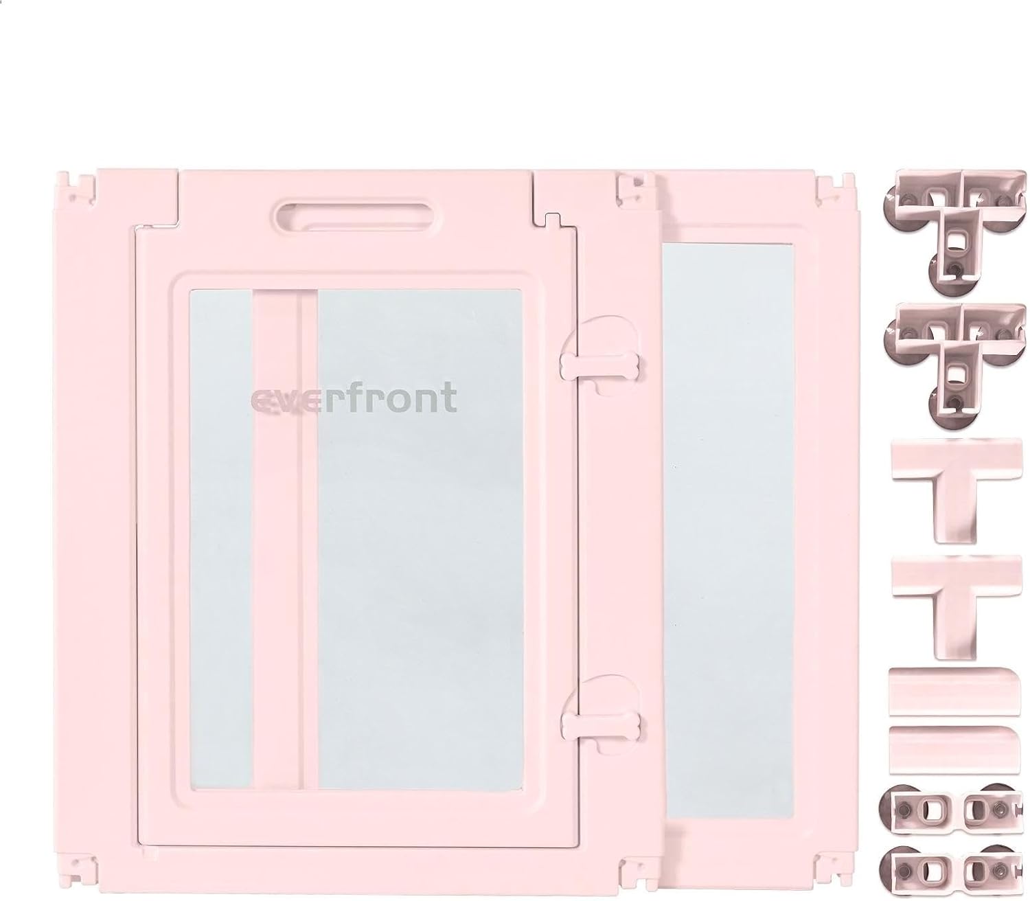 23.6“H 2PCS Extension Kit - Door+Panel, T-Buckles for Compartment, Expandable Clear Dog Play Pen Acrylic Dog Playpen Indoor,for Puppy Cat Bunny Small & Medium Dogs (Pink-23.6" H, 2PCS)