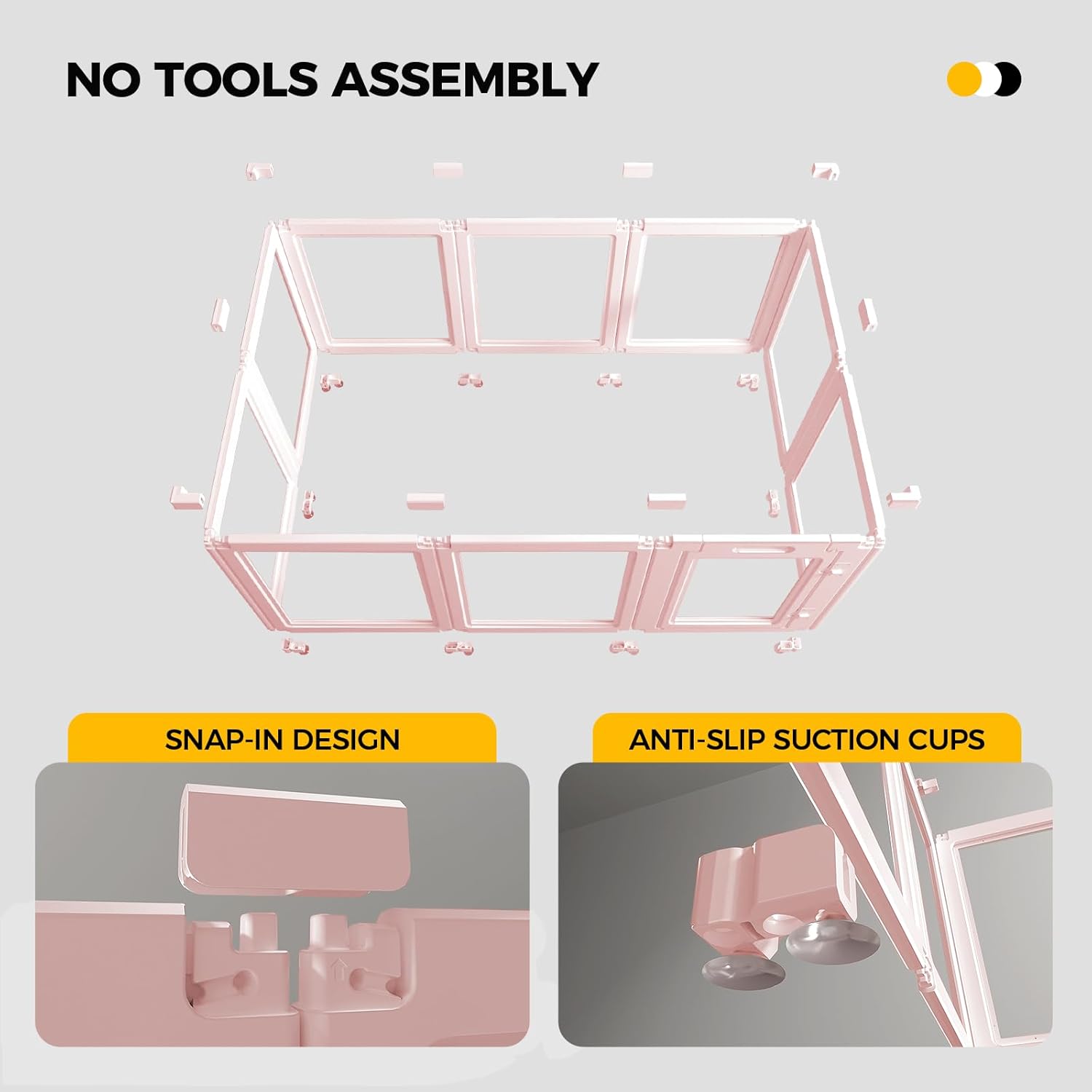 - 【TOOL-FREE ASSEMBLY】Modular design makes it easy to assemble and store away when not in use. Assembly requires no tools and only takes a few minutes, so your pet playpen will be up in no time.