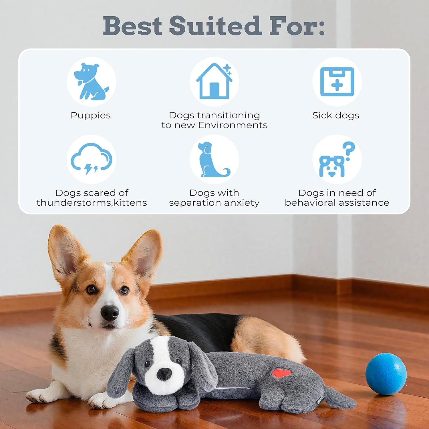 - REDUCE ANXIETY AND KEEP CALM: As widely known, dogs are social animals. When dogs are separated from their pack, they often experience feelings of unease, stress, and anxiety. If your dog suffers from separation anxiety, is adjusting to a new environment, or is about to embark on a journey, our dog heartbeat toy is an ideal solution. This innovative toy, equipped with a simulated heartbeat, effectively alleviates your dog's anxiety.