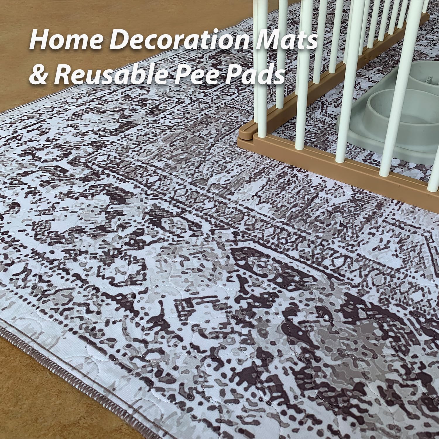 nunubaby Washable Pee Pads for Dogs, Stylish, Non-Slip and Leak-Proof Pee Pads. Reusable Potty Pads for Dogs for Crates and Floors.(Brown/Geo, 24" x48")