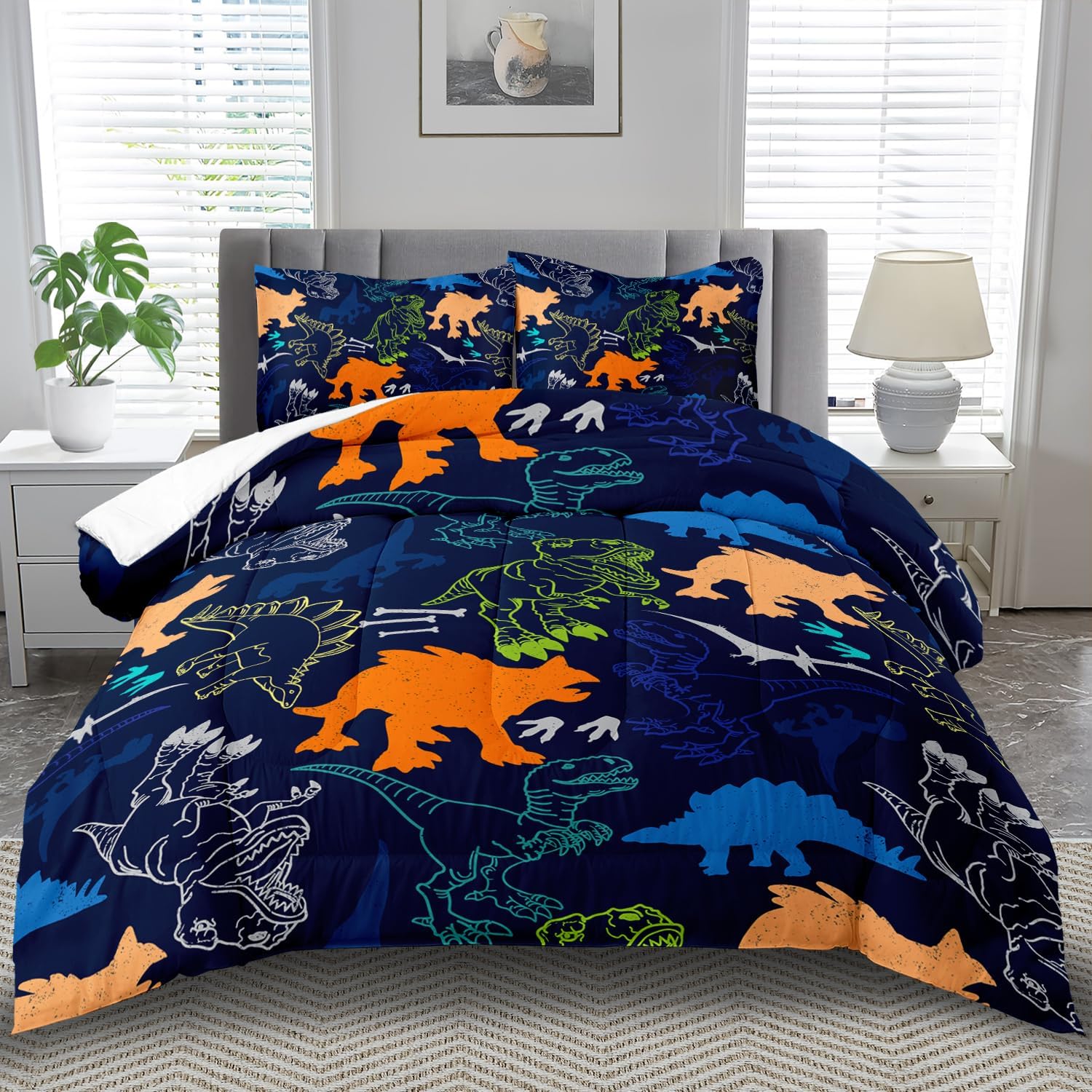 - Twin Size Blue Cartoon Dinosaur Comforter Set :This bedding set includes 1 comforter(67" x 85") and 2 pillowcases(20”x30”). In order to facilitate transportation, the quilt is made of vacuum compression technology. It will be slightly wrinkled when taken apart, but it will quickly regain its fluffiness if you gently beat it.