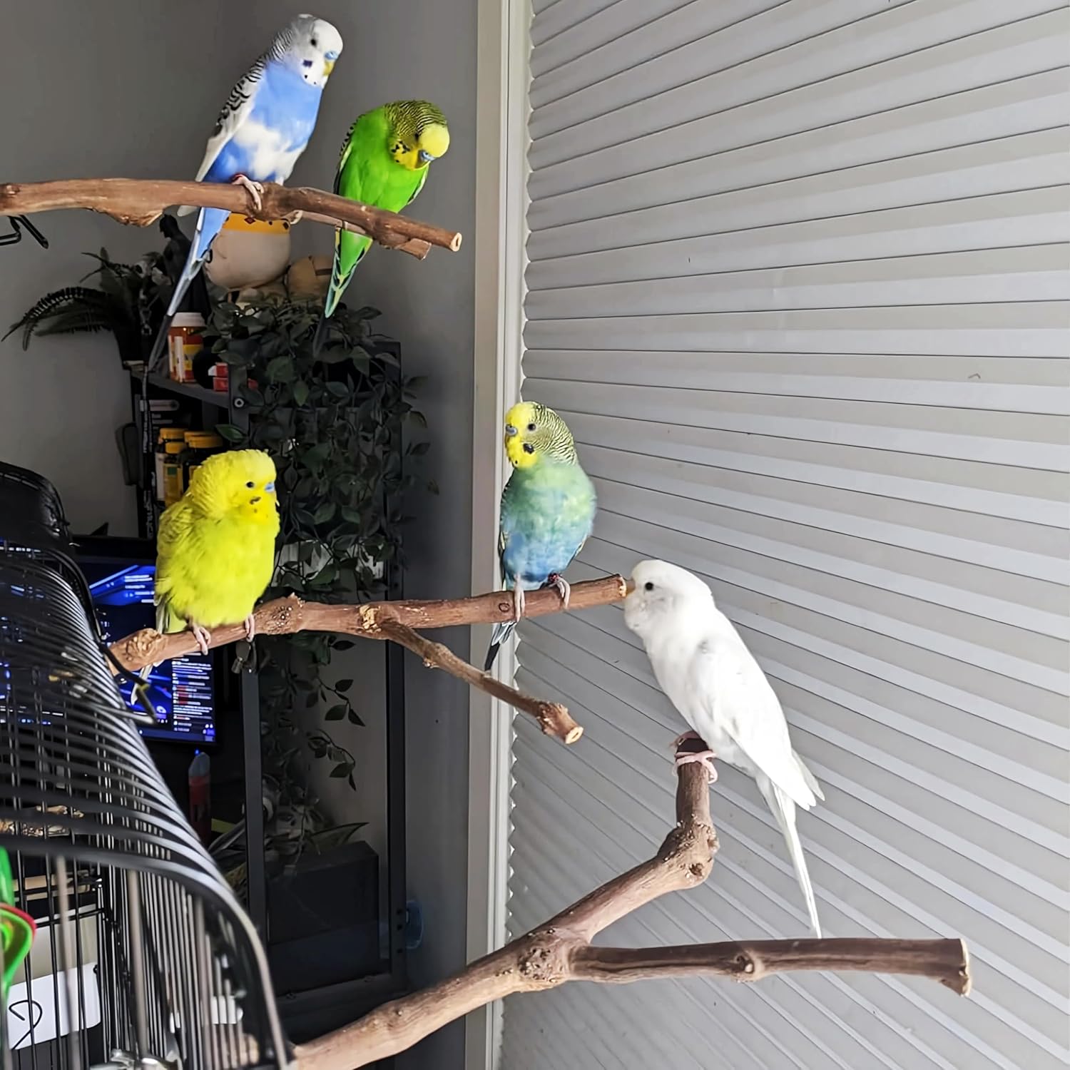 - Multi-functional:The irregular surface of natural wood parakeet perches can comprehensively exercise grip strength of feet and muscles of legs.Natural and chewable material of bird perch branch meet beak grinding need of bird ,effectively relieve stress and anxiety