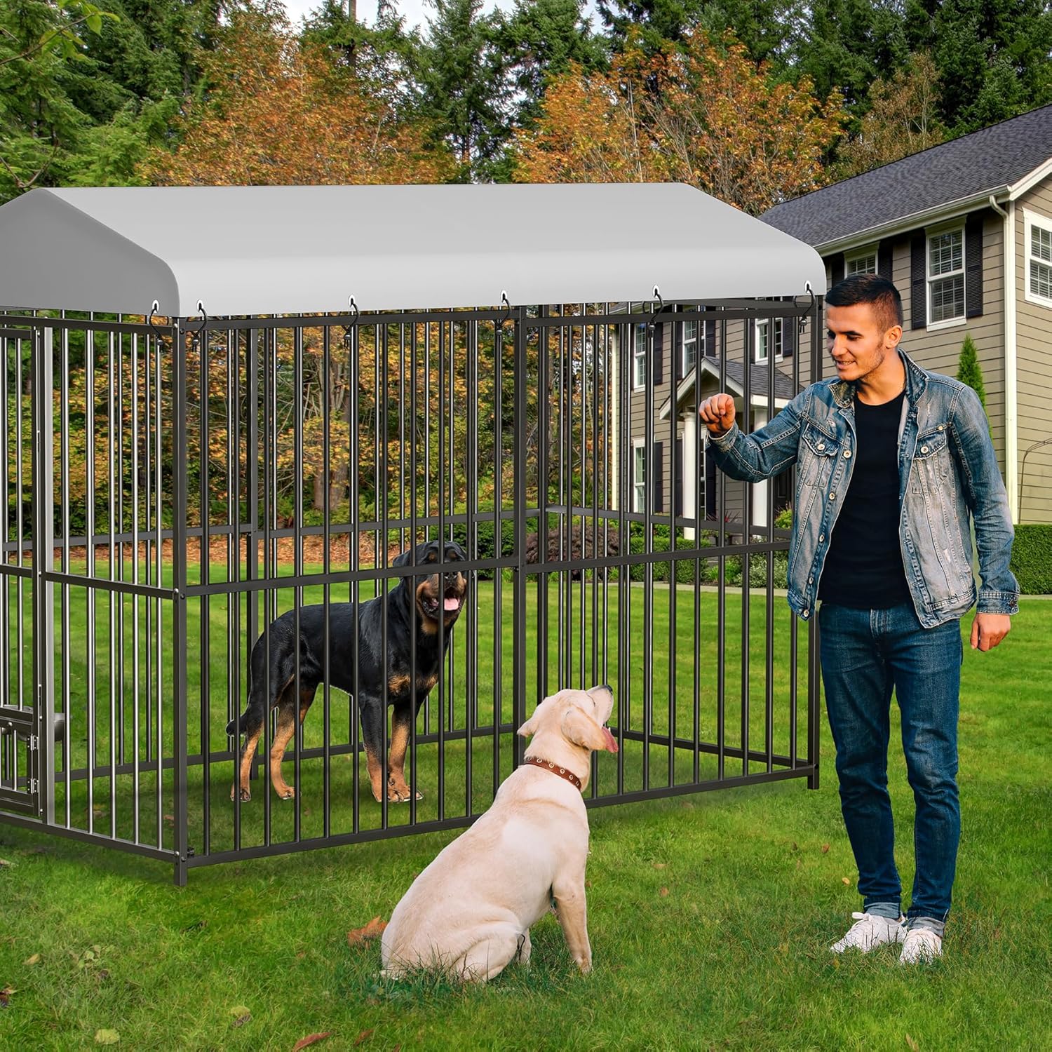 8x4x6 FT Outdoor Dog Kennel,Heavy-Duty Enclosures Outside with UV-Resistant Waterproof Roof Cover and Lock,for Medium and Large Dogs,Easy Assembly