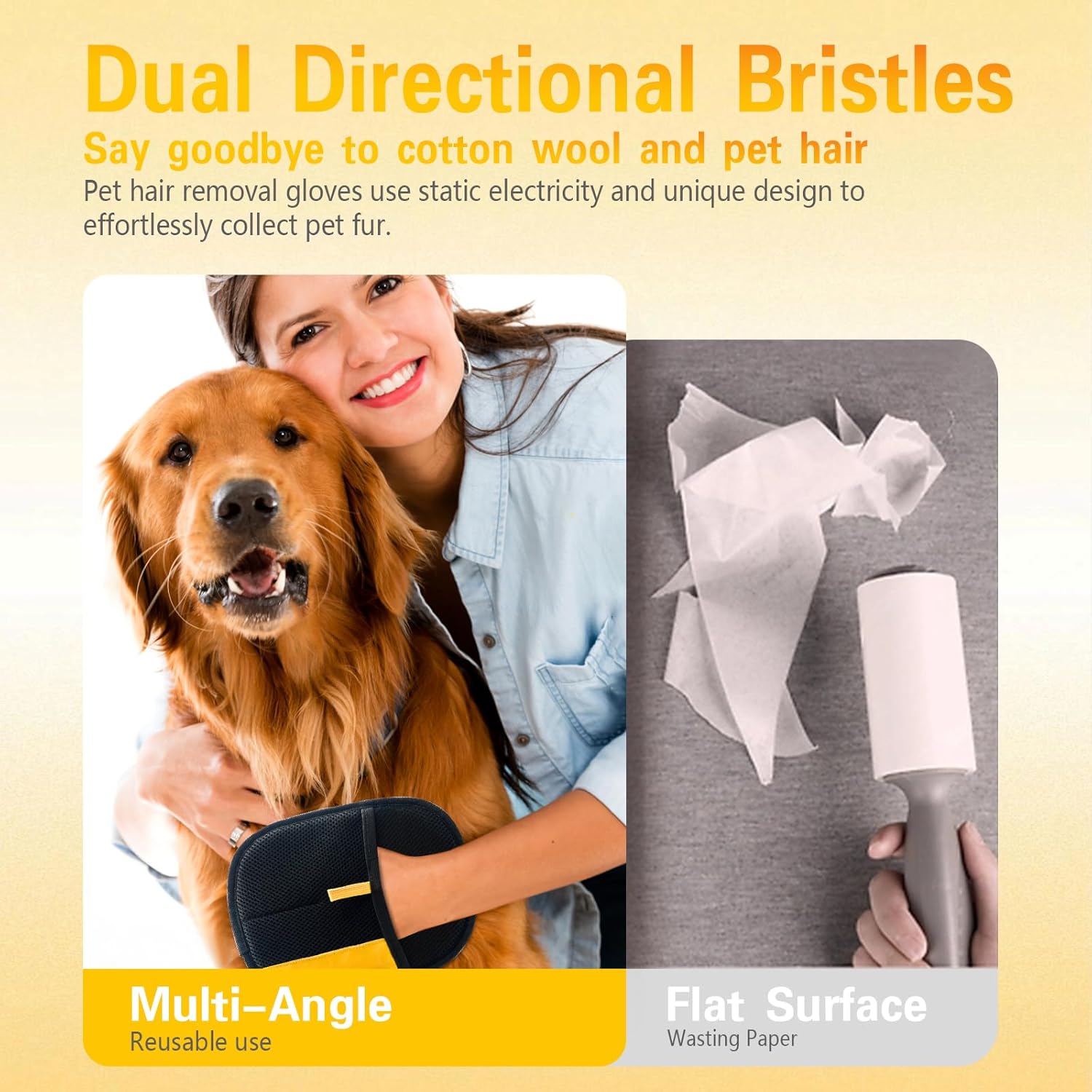 - 【Versatile Cleaning Champion - Pet Hair Remover Gloves for Every Surface】 The ultimate multi-purpose pet hair remover! This pet hair removal gloves works wonders directly on your cats and dogs, and tackles embedded hair on clothing, upholstery (sofas, car seats), carpets, bedding (sheets, quilts), and more. One electrostatic pet hair removal gloves conquers fur everywhere.