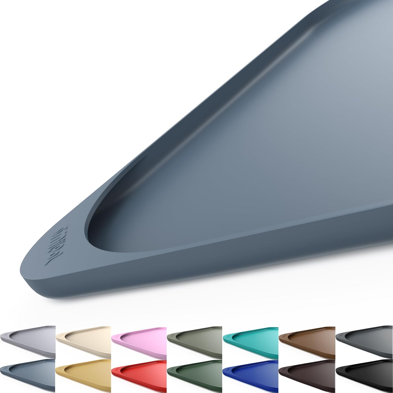 Silicone Pet Feeding Mat with Raised Edge & Residue Collection Pocket for Food and Water, Dog Bowl Mats, Cat Bowls Placemat with High Lip for Floor Waterproof, 22 x 14 x 0.8 Slate Blue