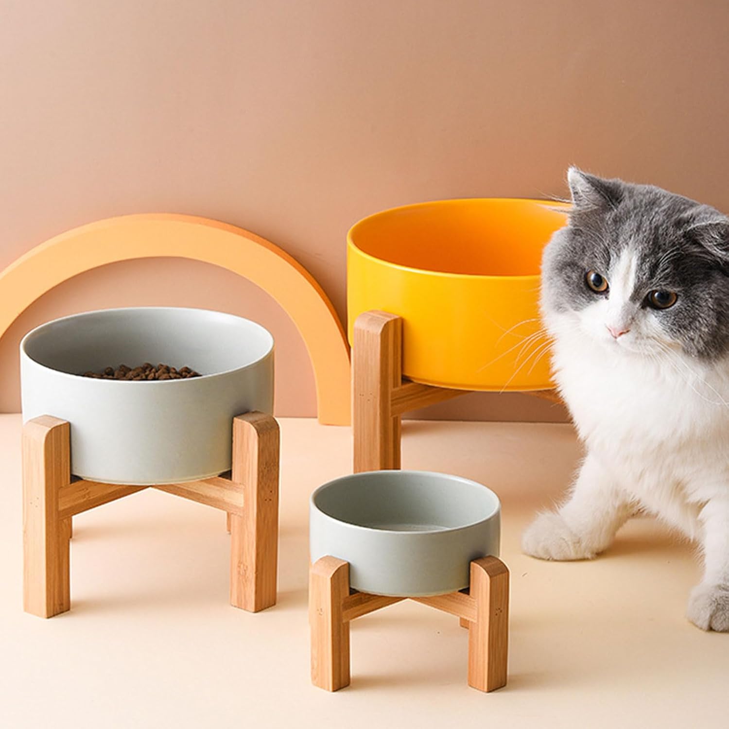- Easy to Clean and Microwave Safe Ceramic Material - Cute ceramic dogs cats bowl with WOOD STAND design matches the home decorations. Ceramic bowl is made of Porcelain, this size cat dog food water bowls are free of lead and cadmium. High temperature ceramic, non-toxic harmless, no smell,durable.Clean sanitation, be helpful for pet health. conveniently dishwasher Microwave safe so this ceramic food bowl can be easily cleaned. No Fuss.