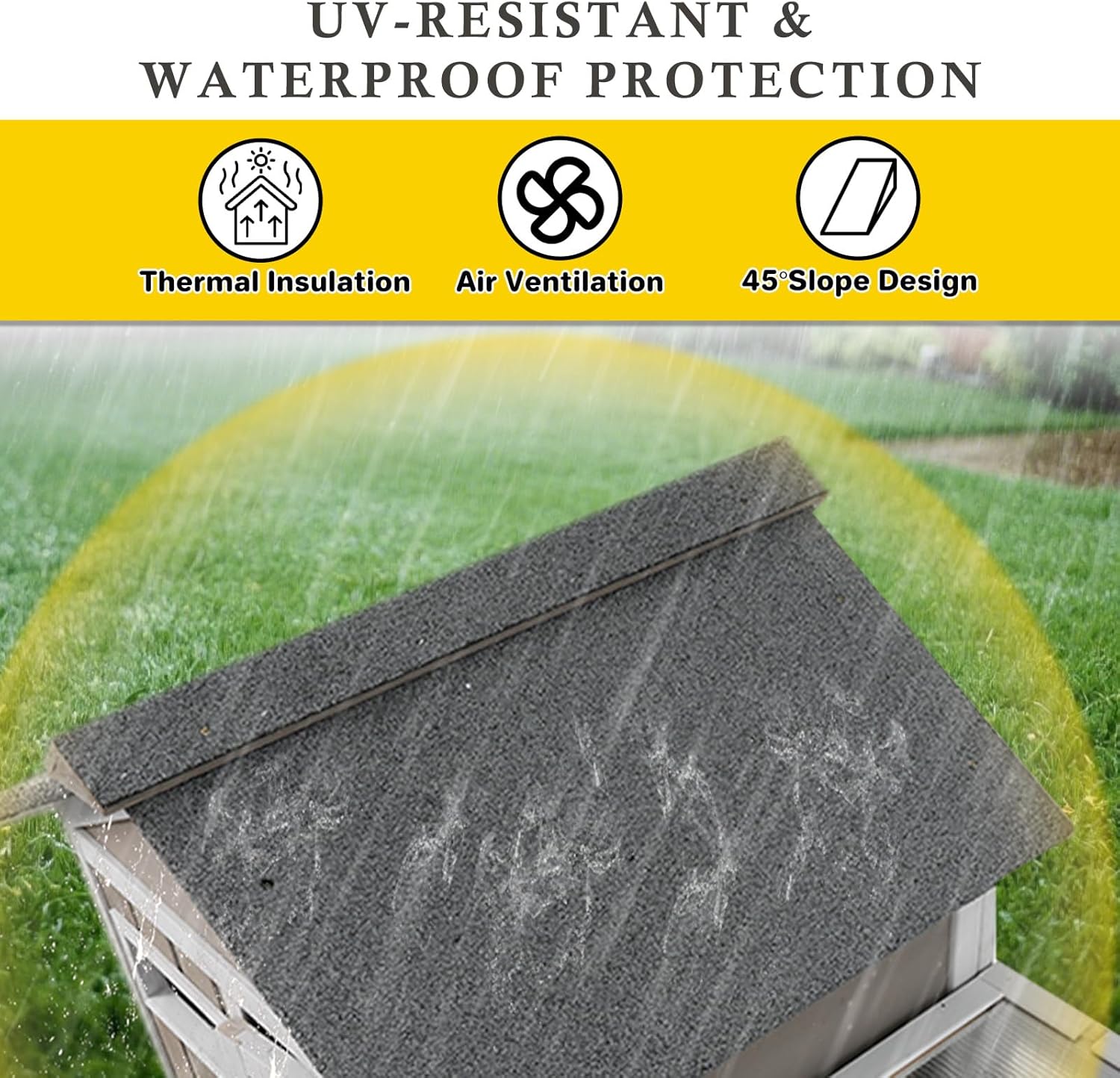 47''L Rabbit Hutch Outdoor Chicken Coop with Run, Wooden Indoor 2 Story Bunny House with Waterproof Roof, Pull Out Tray, Guinea Pig Rabbit Duck Cage for Small to Medium Animals and Pet Lover, Gray