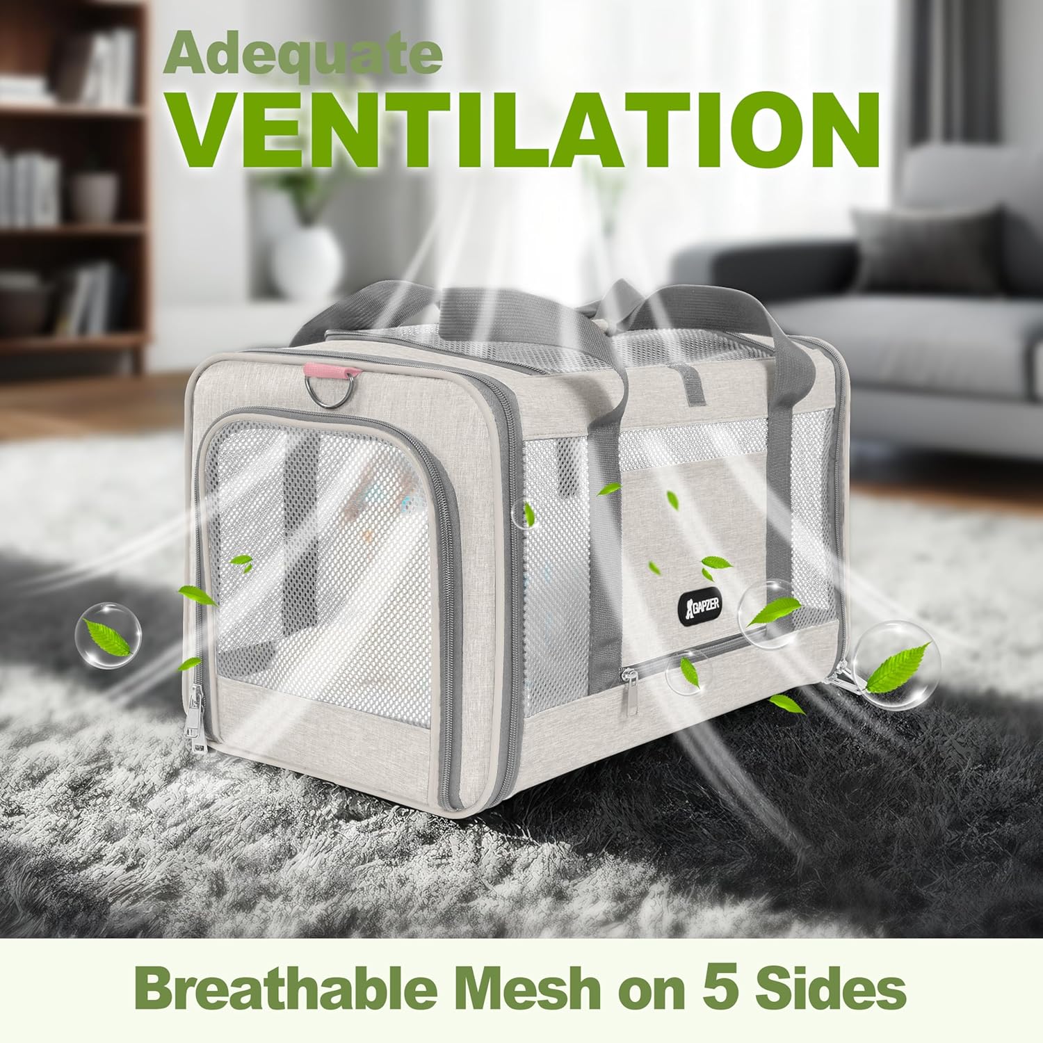 - Escape-Resistant - Self-locking zipper sliders prevent clever kitties from opening this animal carrying bag from the inside while traveling. Reinforced 600D oxford fabric prevents anxious cats or little dogs from claw damage