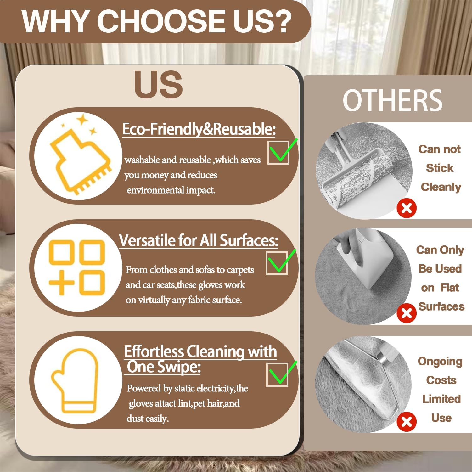 - 【Upgraded Five-Finger Precision Design】Engineered with flexible conductive fibers, our five-finger electrostatic gloves mold to any contour for targeted hair removal. The articulated finger design reaches deep into sofa seams, car vent slots, curtain pleats, and other trapped-hair zones that flat gloves miss – no rigid claws needed.