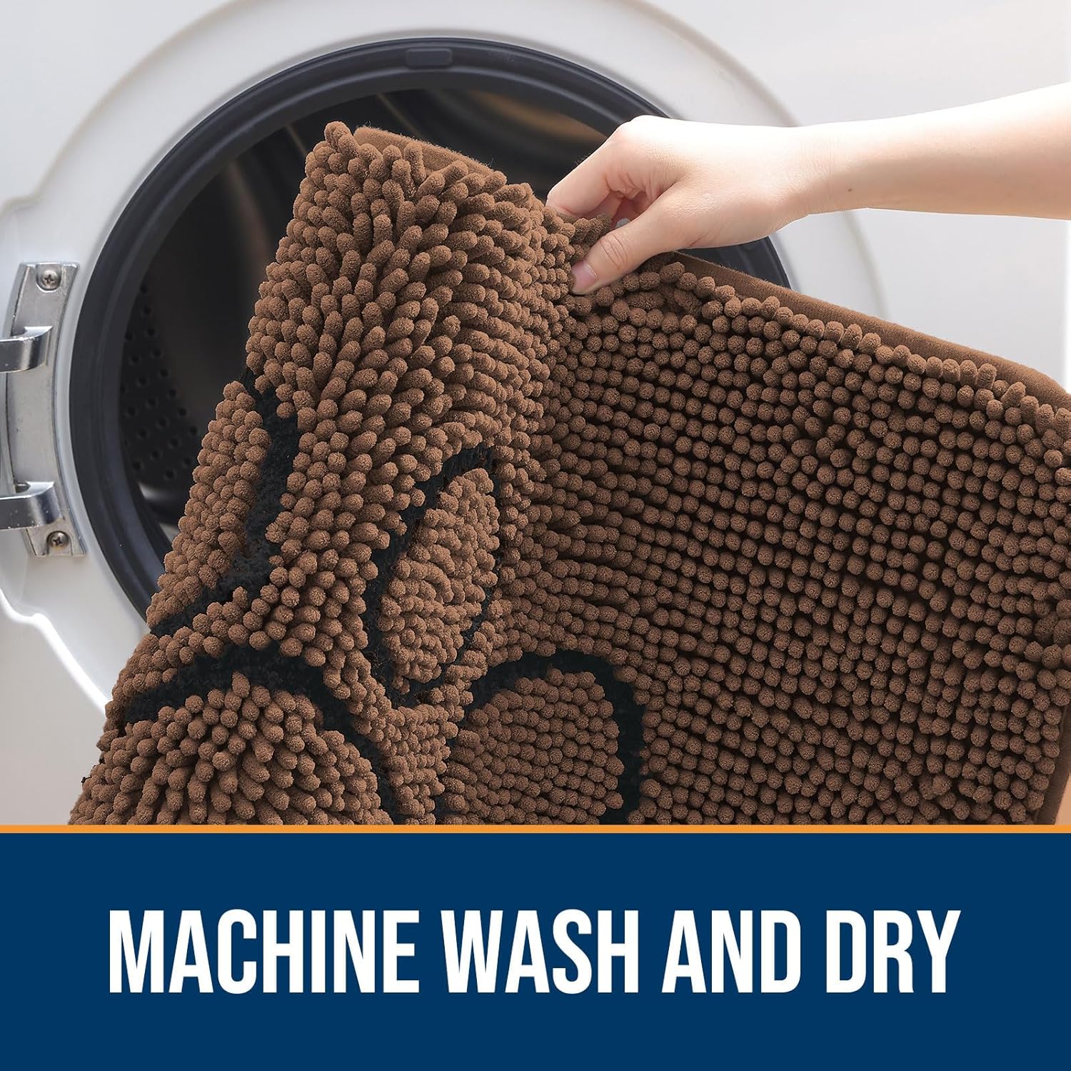 OLANLY Door Mat for Muddy Dog Paws 48x30, Ultra Absorbent Chenille Mud Doormat with Paw Print Design, Non-Slip Washable Doormat for Indoor Entryway, Quick-Dry Pet Bed Mats for Dirty Dogs, Mocha