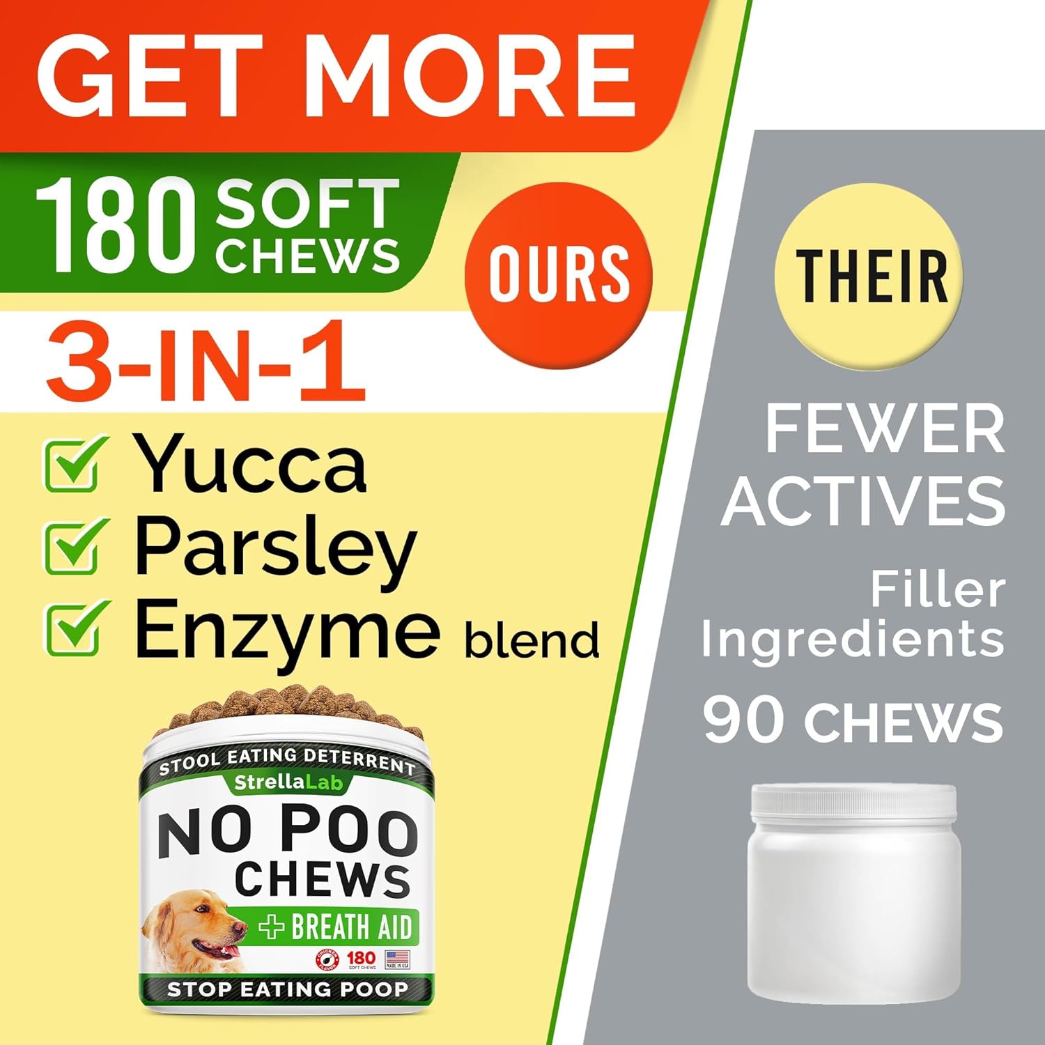 STRELLALAB No Poo Chews for Dogs - Coprophagia Deterrent for Dogs - No Poop Eating - Digestive Enzymes - Gut Health & Immune Support - Stop Eating Poop - (180Ct, Poultry)