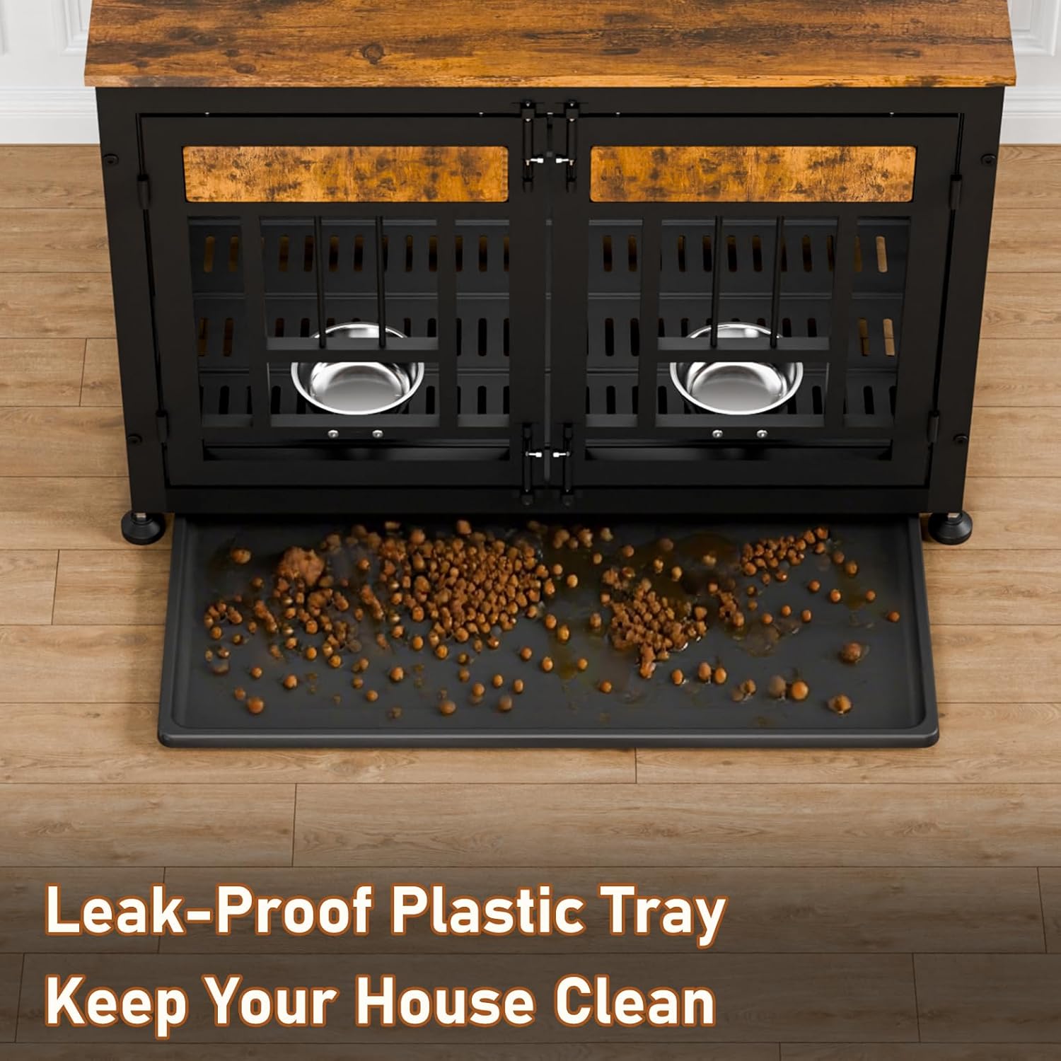 - Easy-Clean Removable Tray: Our Dog crate includes a slide-out plastic tray for quick cleanup of pet hair, spills, or accidents. Simply pull, wash, and replace.