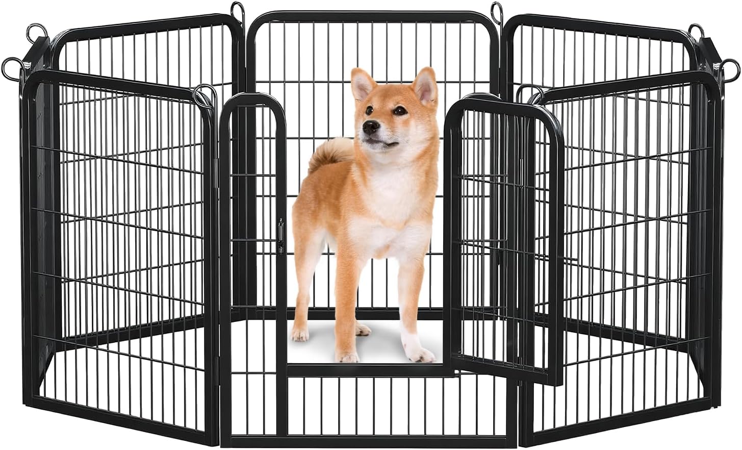 32 Inch Dog Playpen - 8 Panels Metal Pet Exercise Pen for Small-Medium Dogs, Indoor/Outdoor Dog Fence for Yard, Garden, Camping & RV Travel