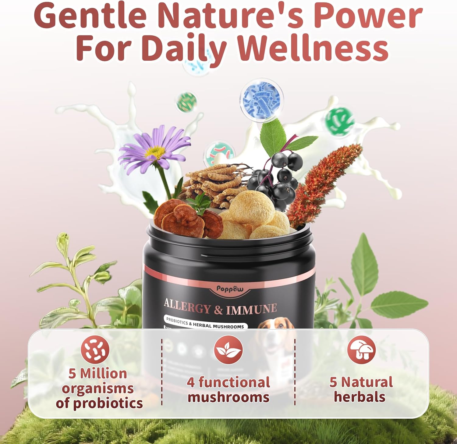 - Tasty & Safe & Natural Chews: Your dog will love our immune and allergy soft chews. Delicious, natural-flavored make wellness a joyful part of your dog's day! And they're a safe, worry-free choice for your dog's long-term health and vitality