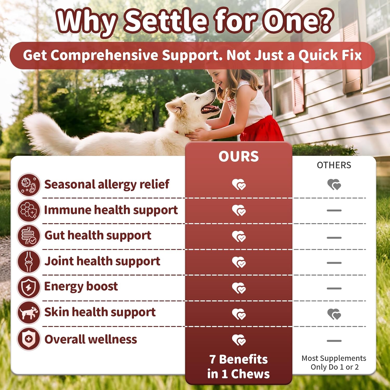 - Ideal for Allergy Dogs: Our gentle formula seasonal allergy support supplements provides loving care for your dogs adapt to their surroundings, soothing itchy skin, and up their natural energy and zest for life