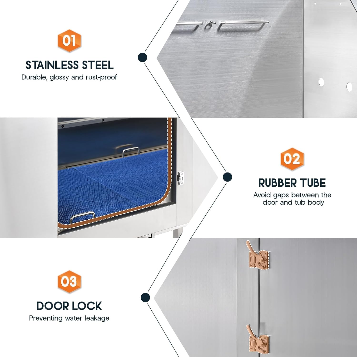 - Durable and Long-Lasting: This Dog Wash Tub is built from premium 304 stainless steel for exceptional durability, with an easy-to-clean surface for quick removal of bath residue.