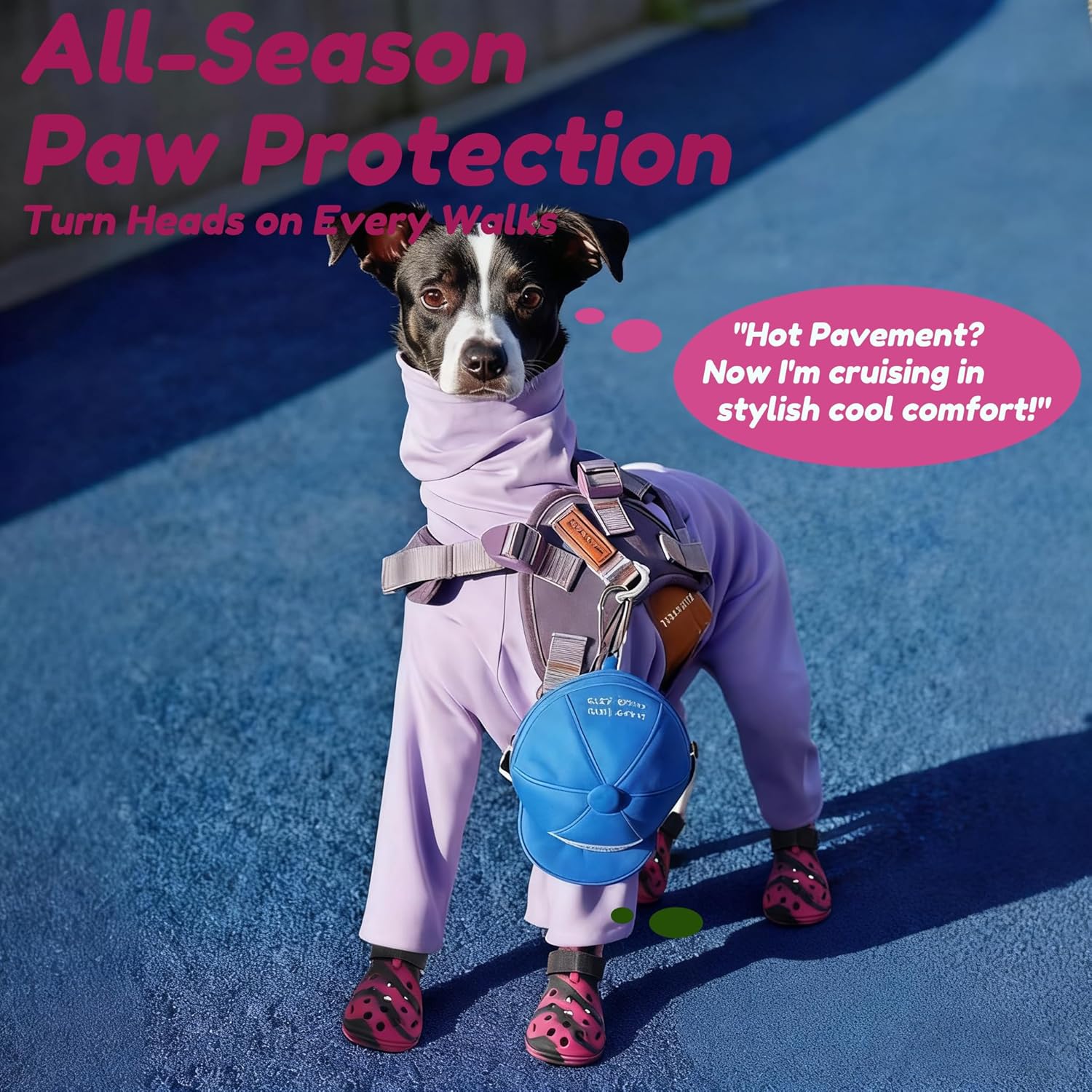 - 【Lightweight Fit · Cloud-Like Comfort】 Soft silicone dog shoes for hot pavement contour naturally to the paw without rubbing or pressure. Ideal for long walks, travel, or outdoor play, they provide all-day comfort while maintaining full paw mobility and cushioning.