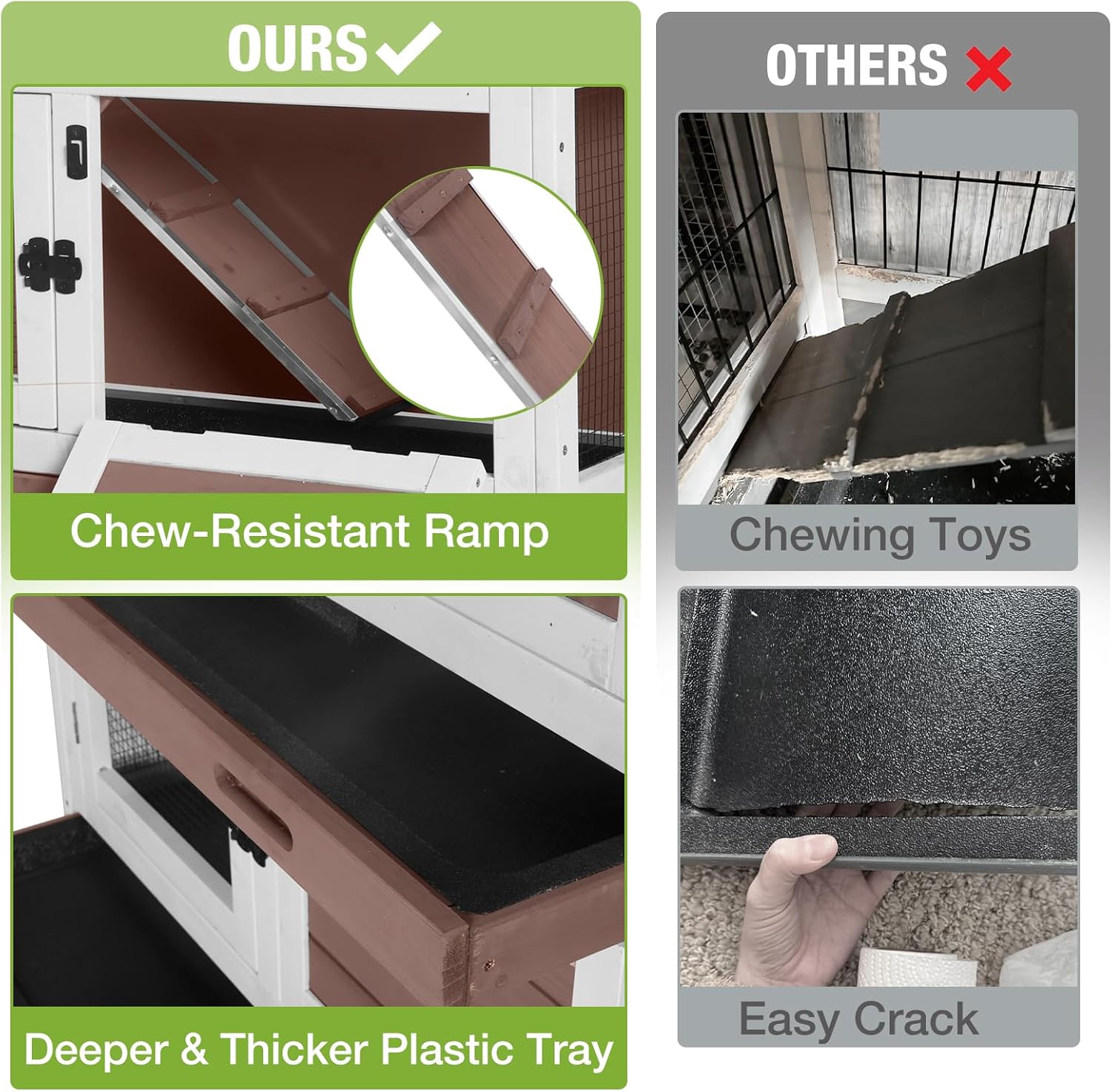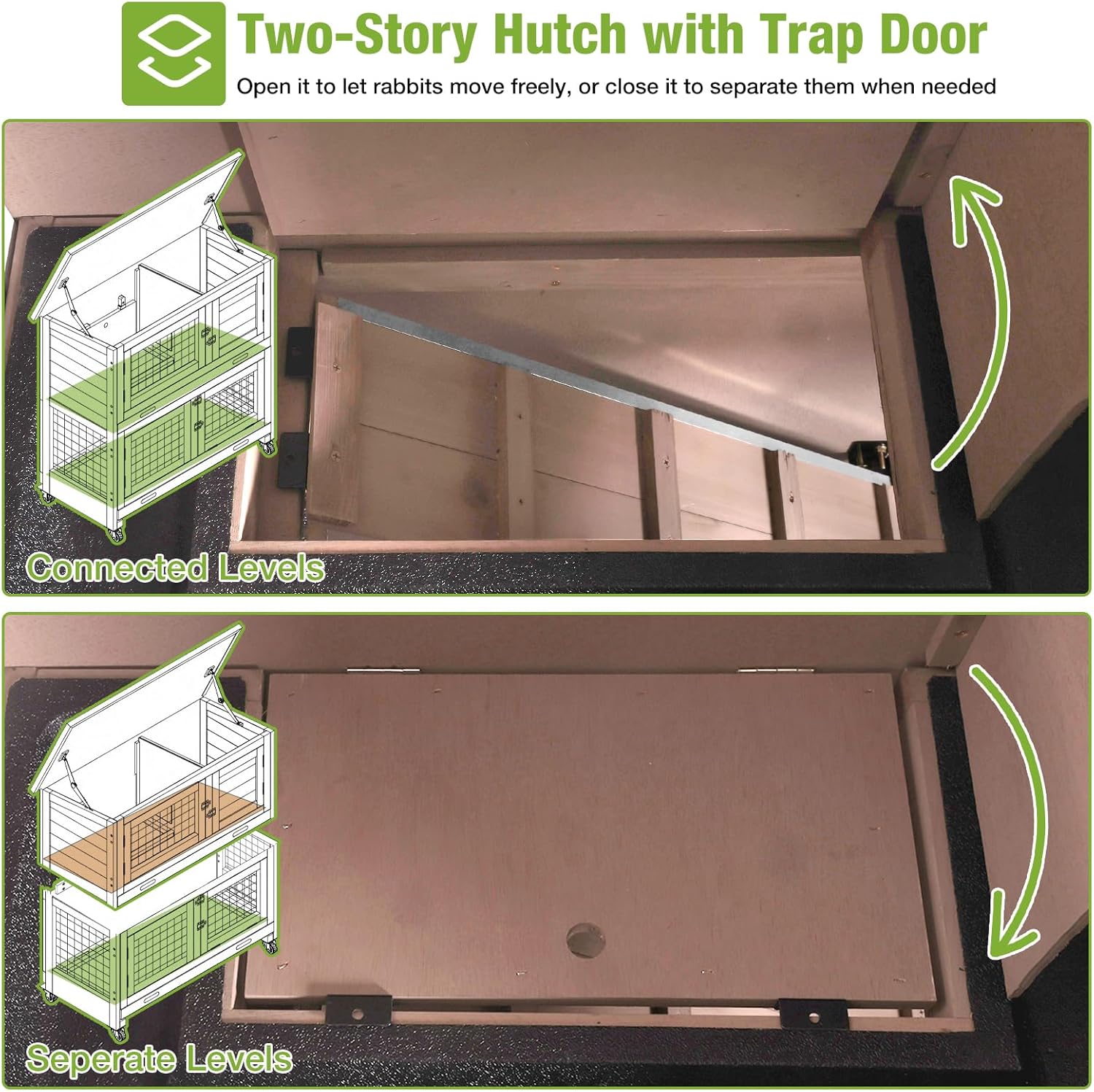 - Easy to Move: Four sturdy wheels let you roll the rabbit hutch smoothly for cleaning or repositioning