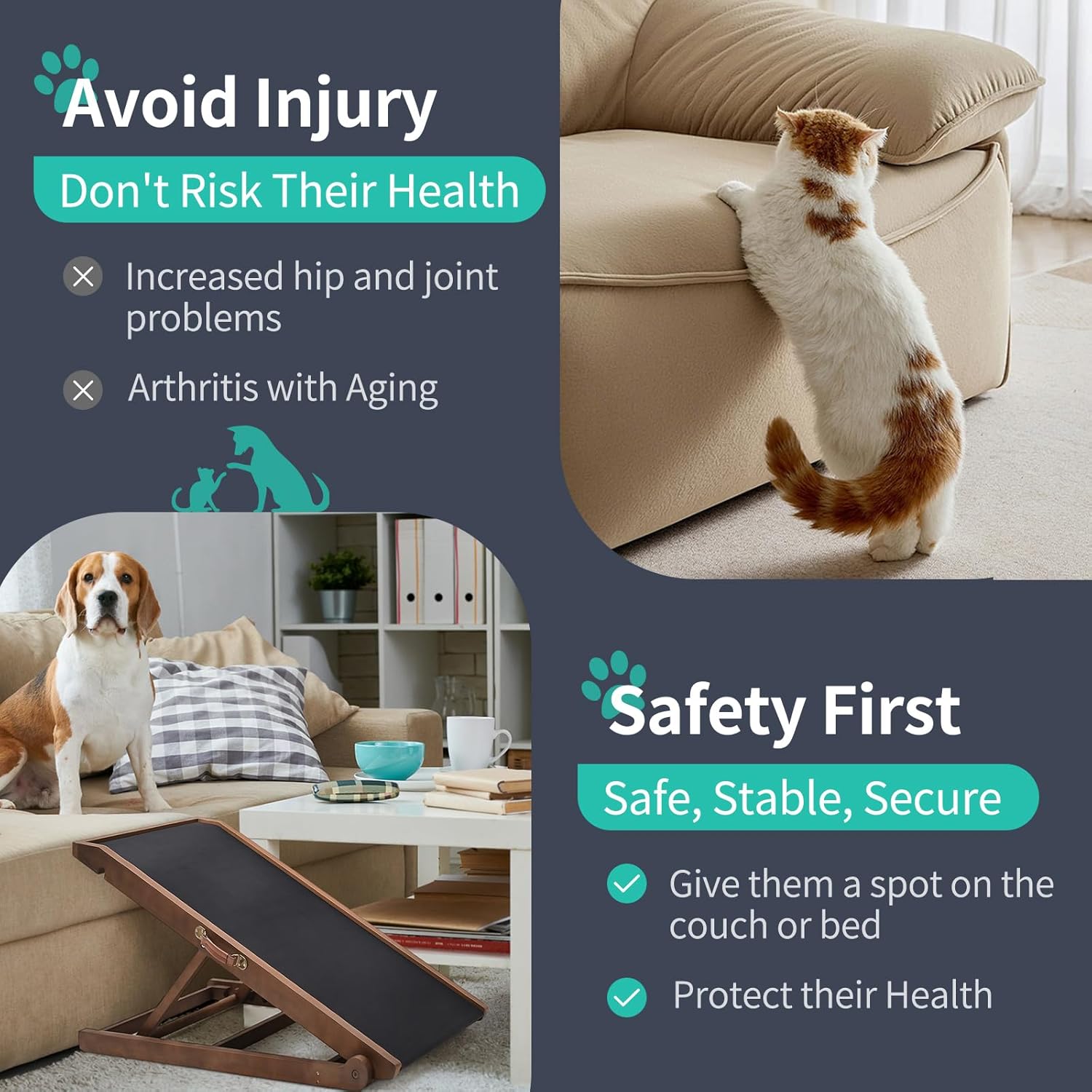 Dog Ramp, Adjustable Height Wooden Folding Pet Ramp for Bed, Couch,SUV-High Traction, Portable Paw Ramps for Small & Large Old Dogs & Cats - Furniture Quality