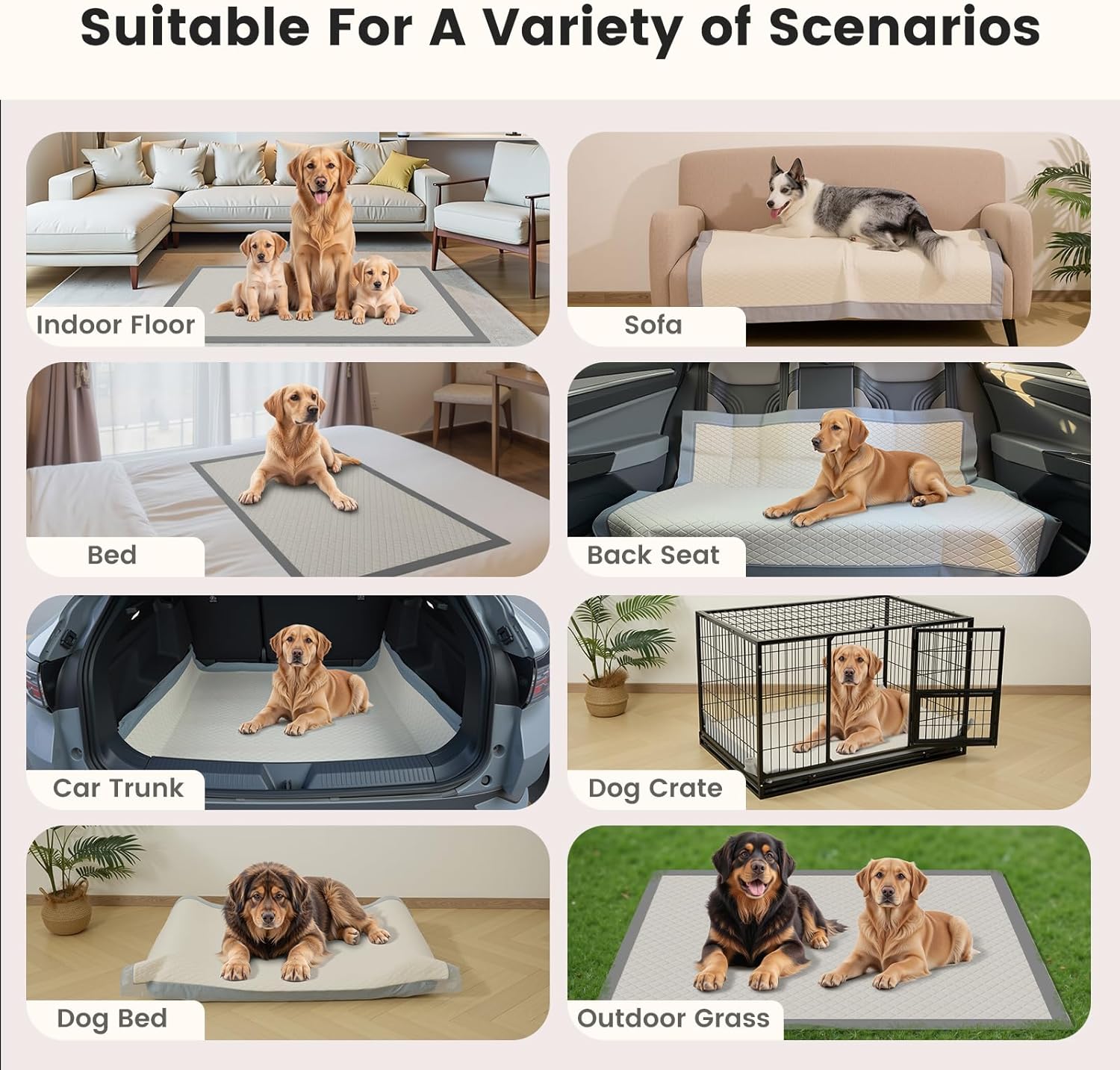 - Multiple Scenarios, Essential for Pet Owners: This xl puppy pads large is highly versatile. It can serve as training pads for dogs, pee pads for cats, senior dog potty pads, or postpartum care pad. Ideal for dog crates, cars, puppy trays, cat carriers, playpens, and covering spills from water/food bowls. Perfect for travel, outdoor use, hotels, public spaces, and daily walks. This pet pee pads meet nearly all pet needsāsuitable for large puppies, dogs, cats, senior pets, kittens, rabbits, ducks, and more.