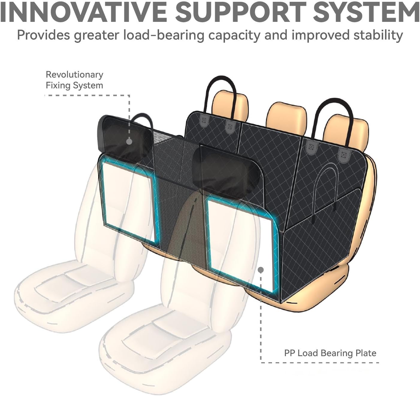 - Prevents Dogs from Falling:The seat base includes three high-strength PP hollow boards, creating a stable platform that prevents dogs from falling between seats. It offers solid support and a secure space for your dog to move freely in the car.