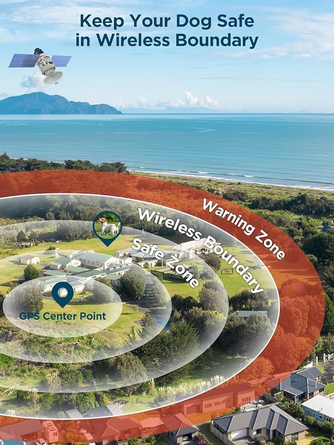 Wireless Dog Fence System, GPS Wireless Dog Collar with 3 Correction Mode, Pet Containment System with AI Smart Signal, Electric Dog Fence Collar for Outdoor Use