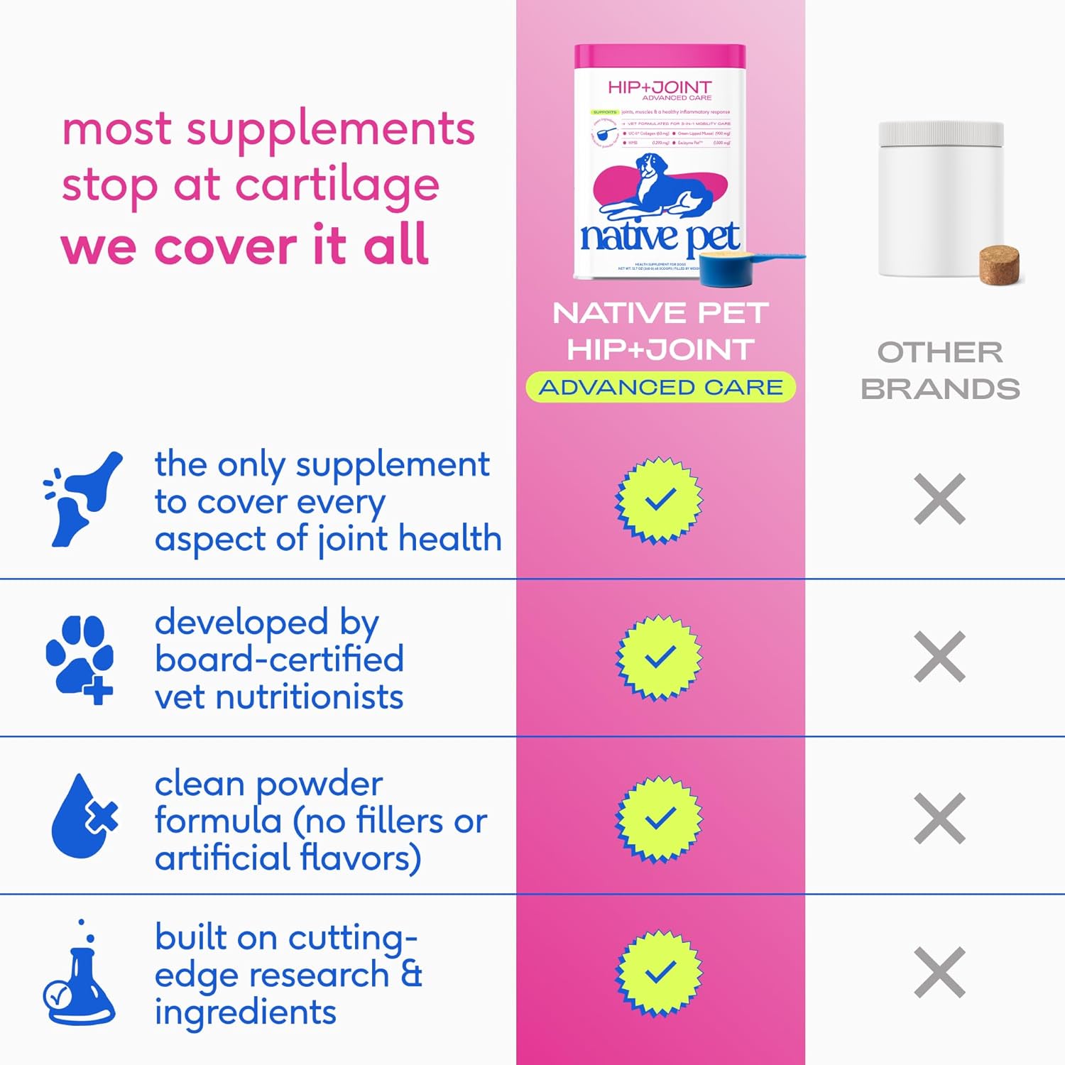 Native Pet Advanced Care - Hip & Joint Supplement for Dogs - Supports Joints, Cartilage, Muscles & Anti-Inflammatory with HMB, UC-II Collagen, Green Lipped Mussel & Hyaluronic Acid - 60 Scoops