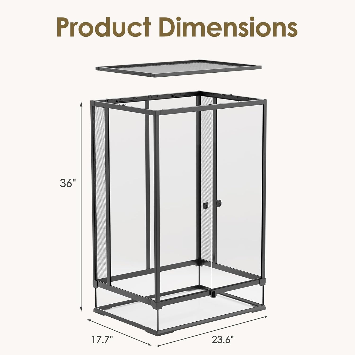- Ventilated Design: Our reptile terrarium features interchangeable glass or mesh panels for rainforest or desert habitats, plus a mesh top and side vents for airflow. Removable lid and front-opening glass doors make feeding and cleaning simple